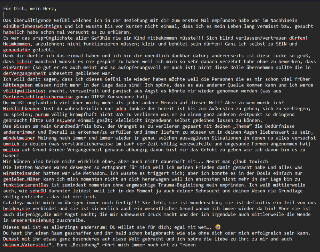 „In der Beziehung mit dir durfte ich dieses wundervolle Gefühl das erste Mal haben“.